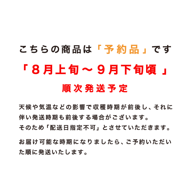 8月上旬~9月下旬以降順次発送予定